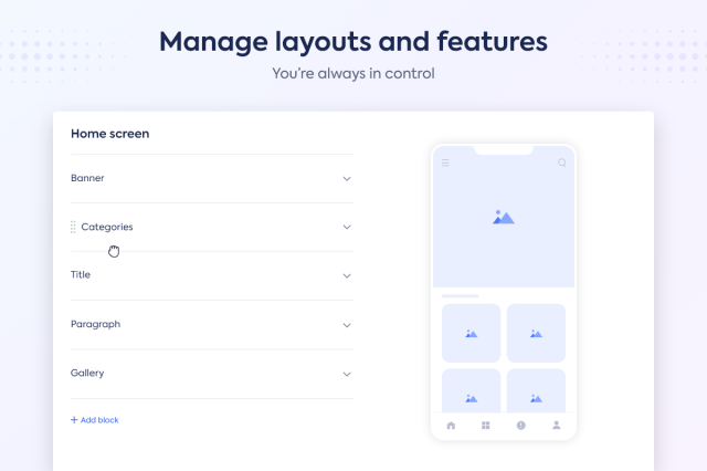 Customize and preview your app’s design, content, and layout with a user-friendly interface