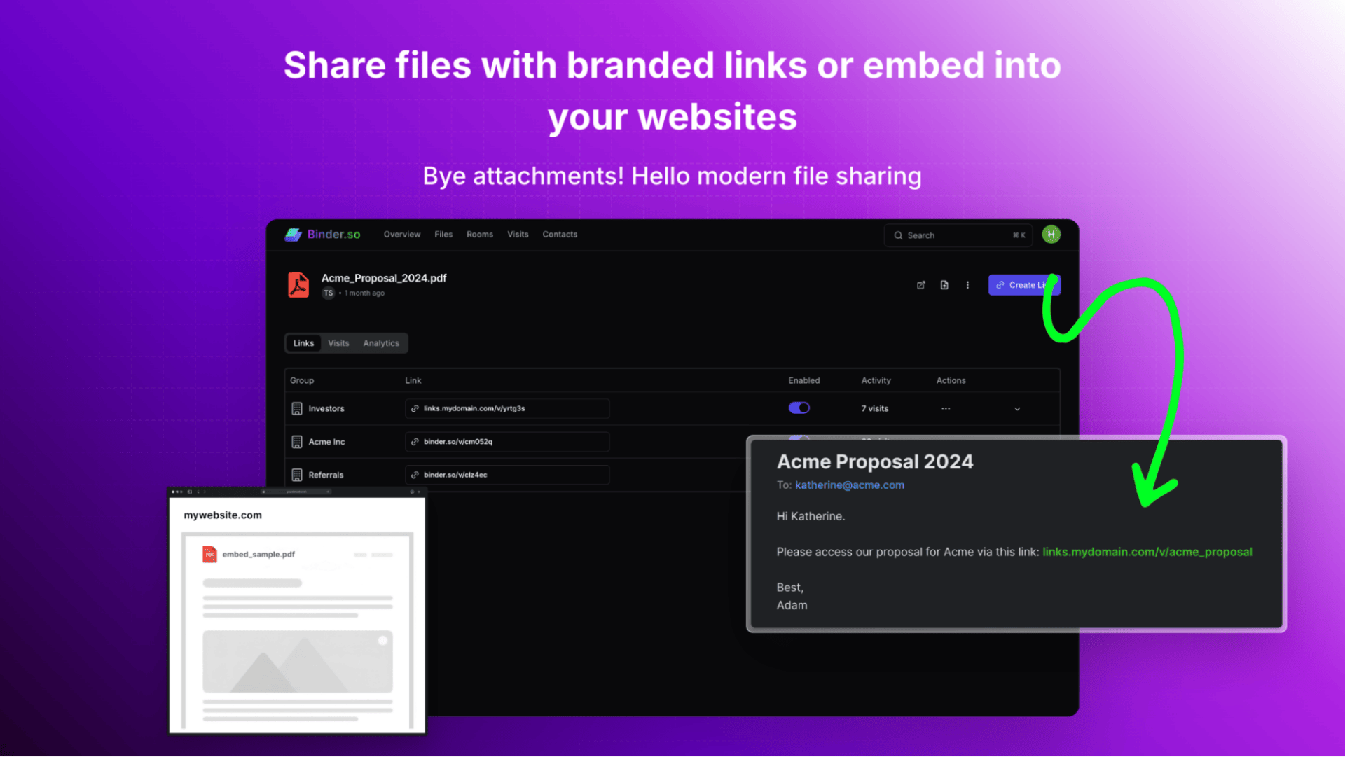 Send branded links to share documents or embed them into your website.