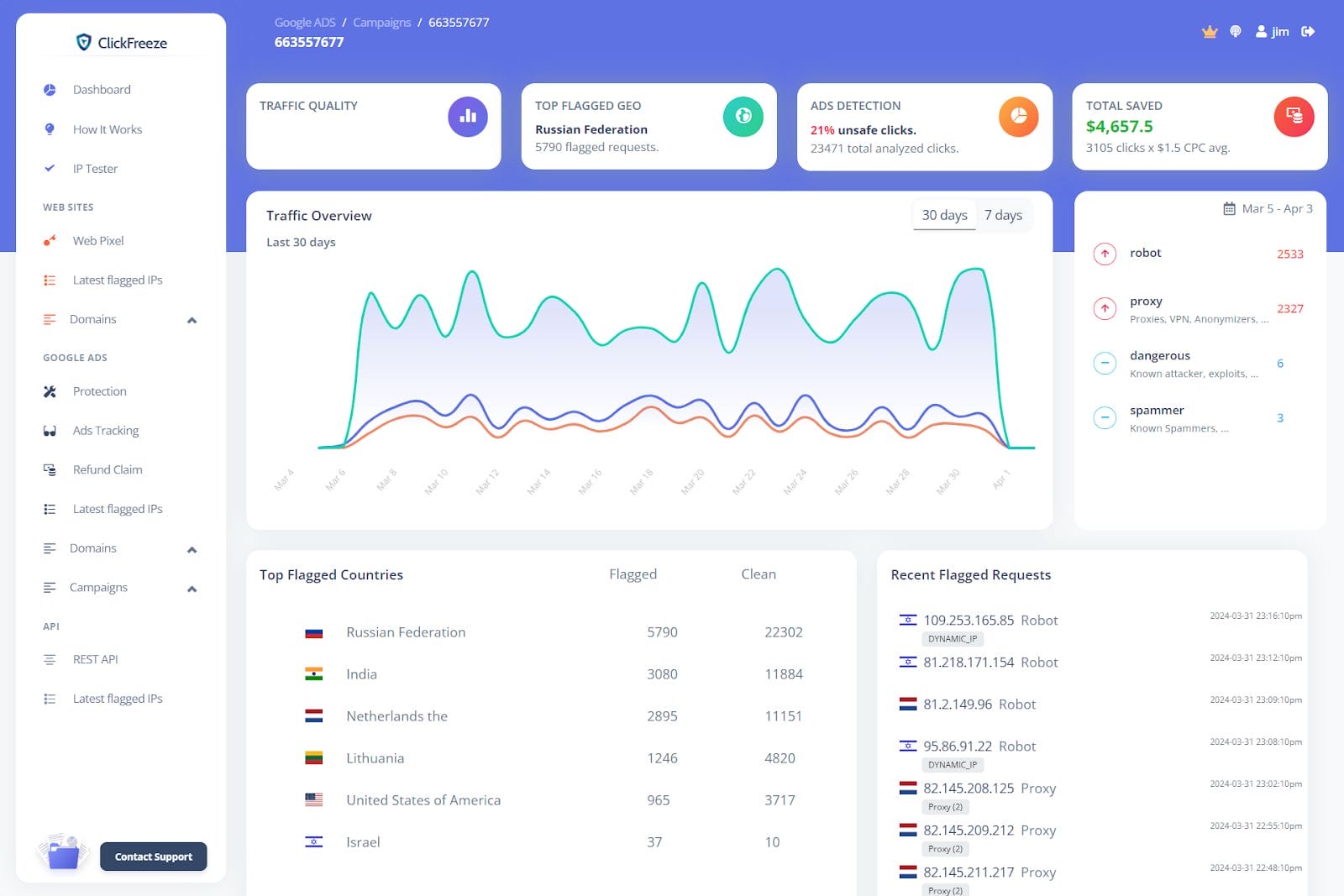 Get a live snapshot of your traffic fraud level on a user-friendly dashboard