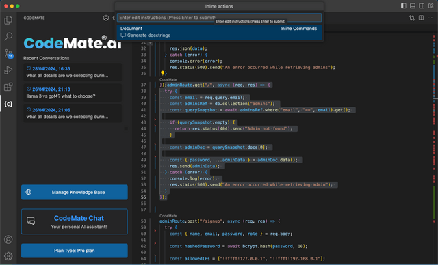 Say goodbye to Google searches and long Stack Overflow answers! CodeMate AI lets you find what you’re looking for and get answers to questions by simply asking the AI.