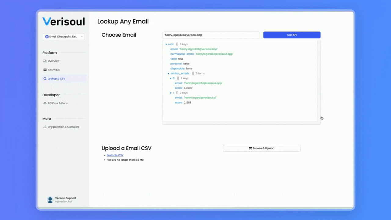 Connect your form to the API and start verifying email addresses after sign-up