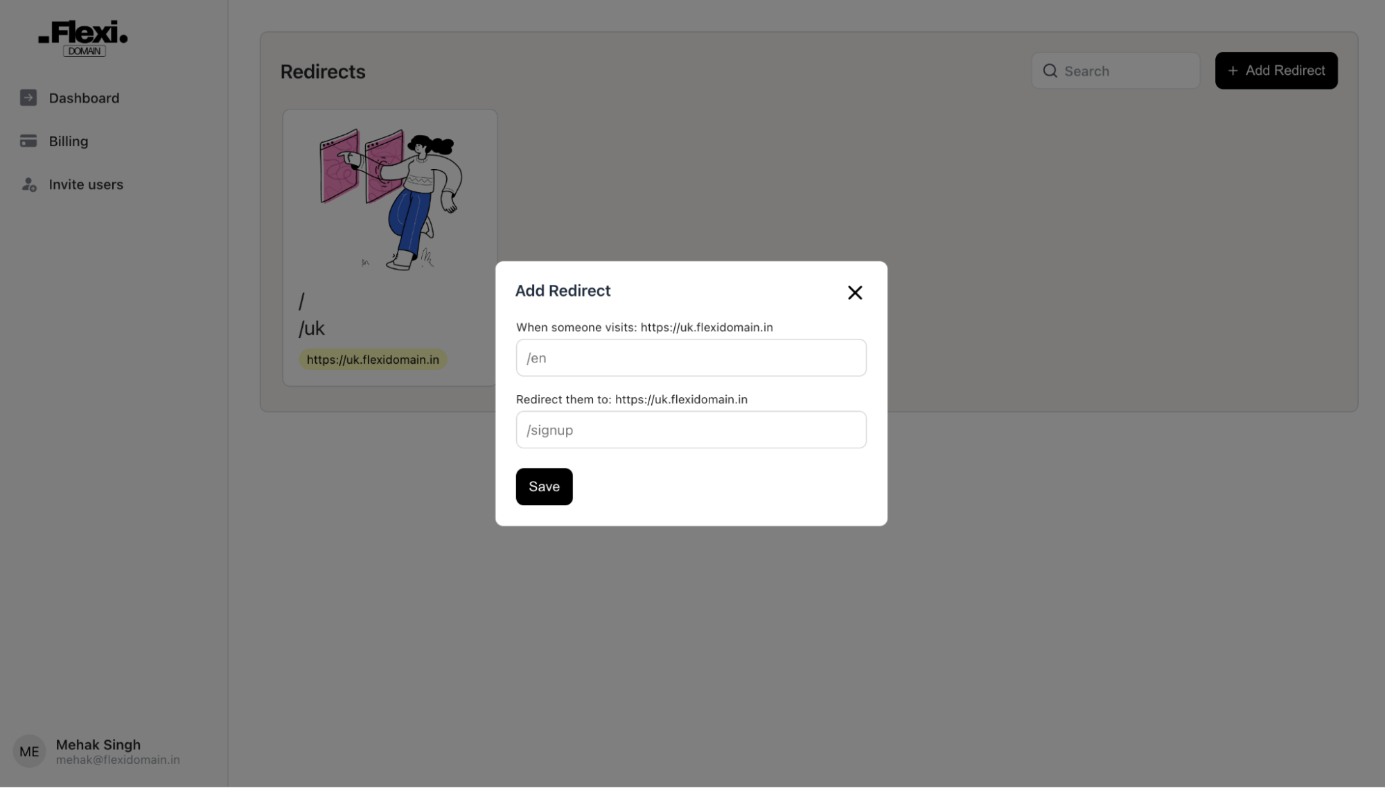 Best of all, you can invite external users to create white-label domains and redirects on Flexi Domain.