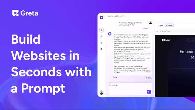 Greta lets you create full-stack apps and websites with simple prompts and ready-made UI components—no coding necessary.