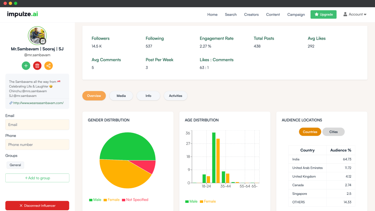 Impulze.ai is an influencer marketing platform that lets you find influencers, manage partnerships, and track campaign performance.