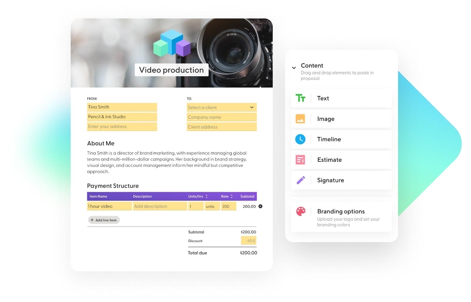 In just a few clicks, you’ll be able to whip up branded proposals tailored to each client’s unique project.