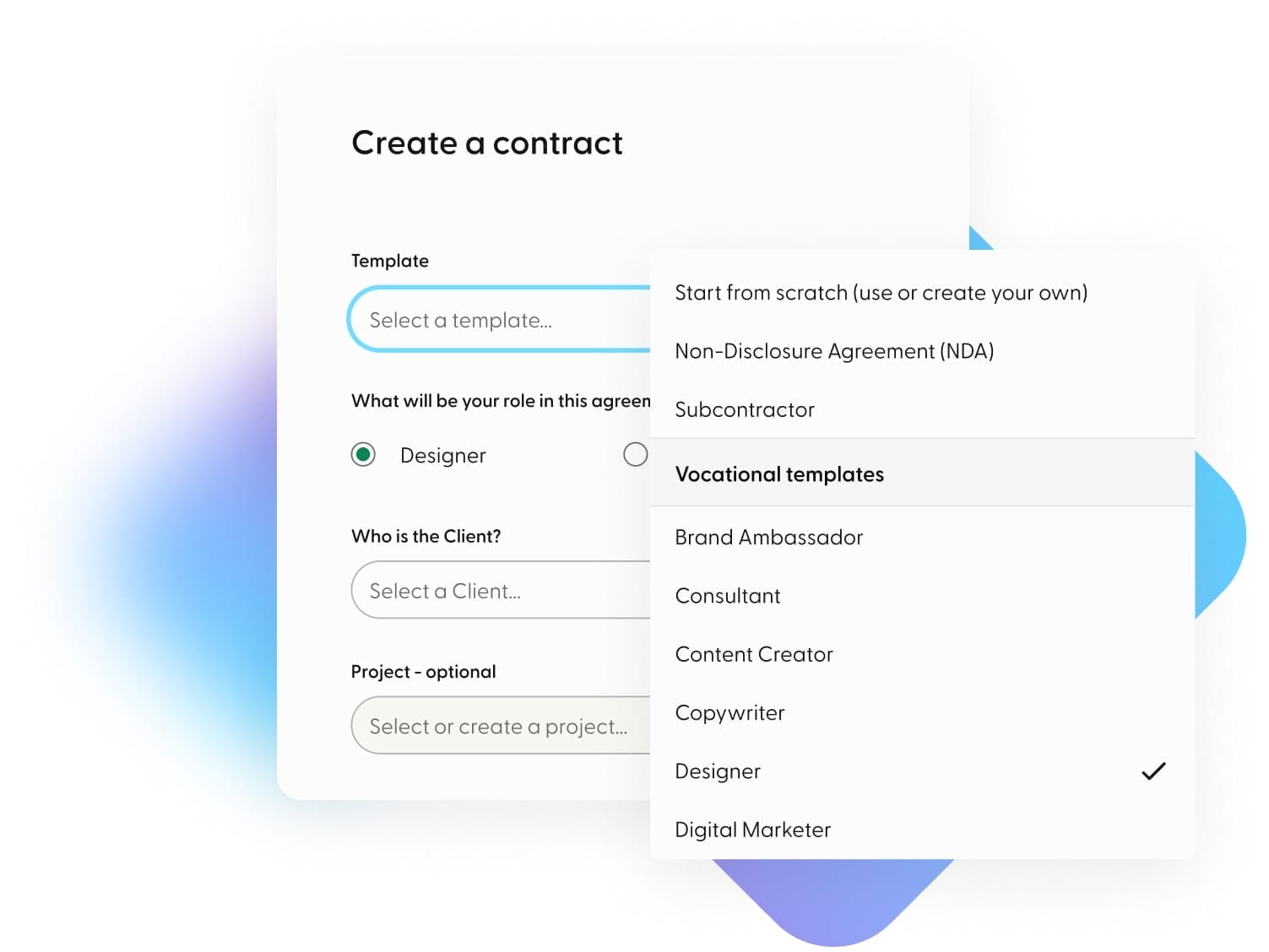 Send legally-sound contracts that clients can easily sign—no need to make a new account!