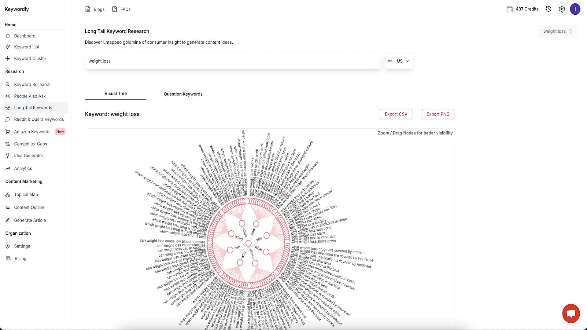 Keywordly helps you find relevant long-tail keywords that are low competition with high conversion potential, so you can create a more targeted keyword strategy.