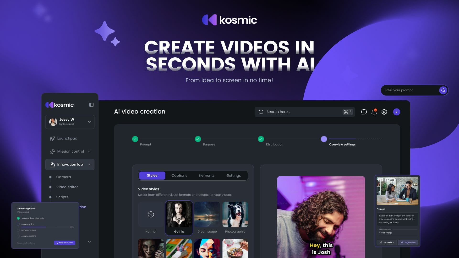 Just enter a prompt and choose the style—then let Kosmic Ai create scripts or scene-by-scene storyboards