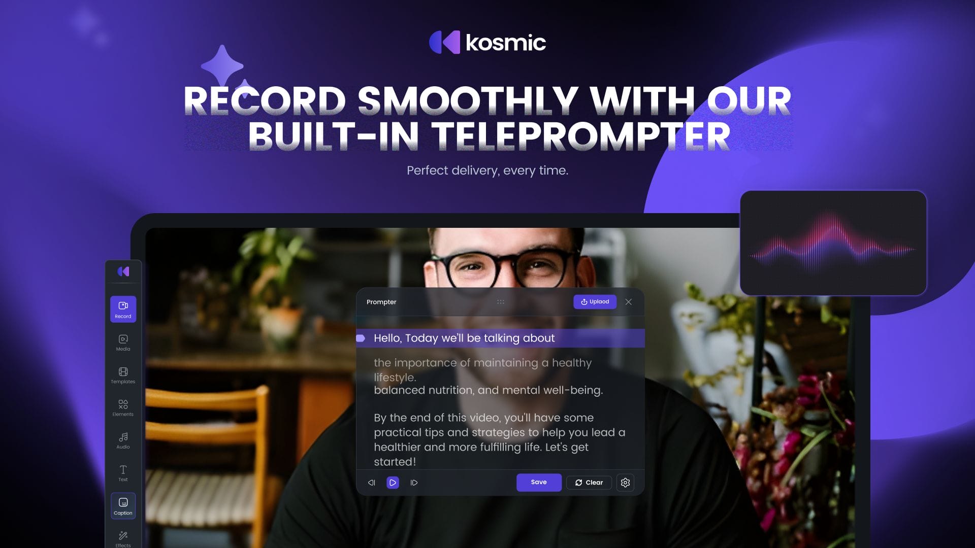 Speaking on camera or recording a voiceover? Take advantage of Kosmic Ai’s teleprompter to achieve a smooth, natural delivery in one take.