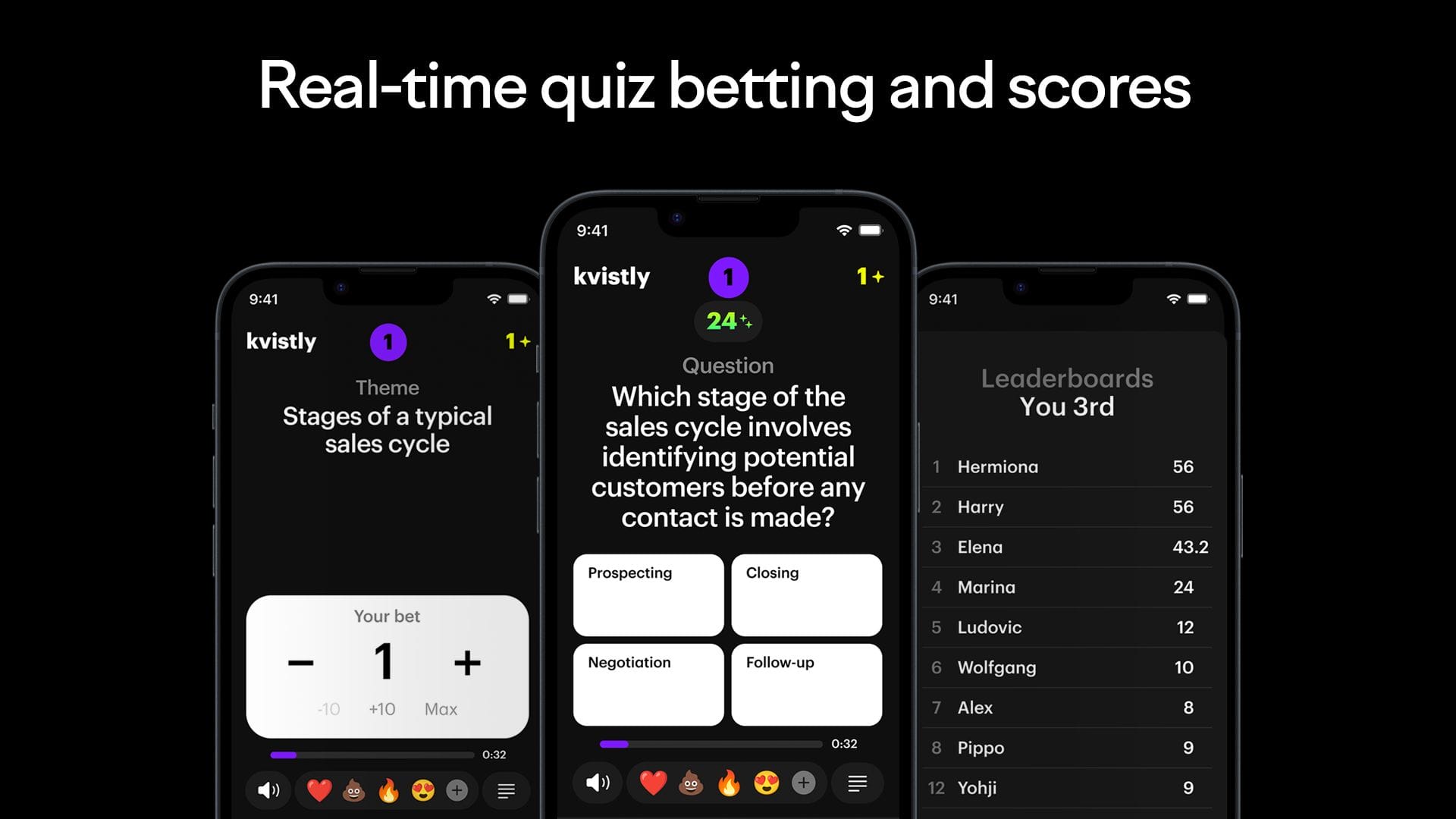 But these aren’t boring multiple-choice quizzes! Kvistly’s “betting system” lets users compete for the right answers to raise the stakes.
