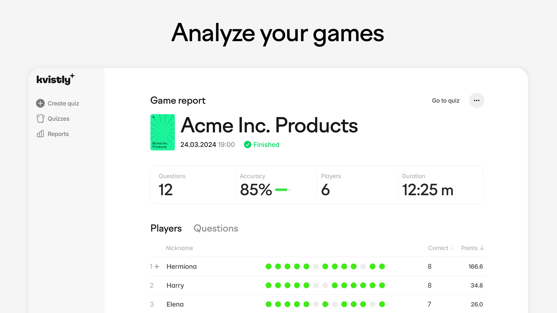 After a quiz ends, Kvistly shares analytics so you know who’s nailing the material and who needs a little extra support.