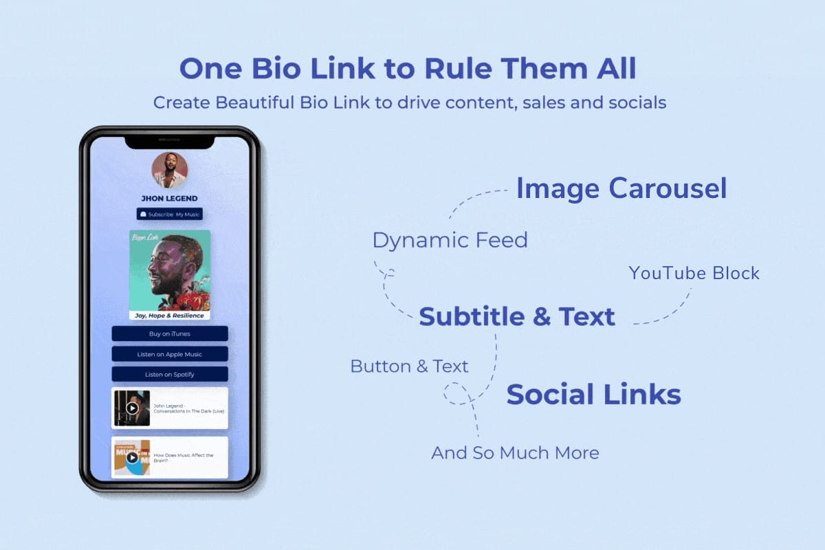 Create a clickable optimized landing page using your one link, making it easier than ever for followers to go exactly where you want them to.