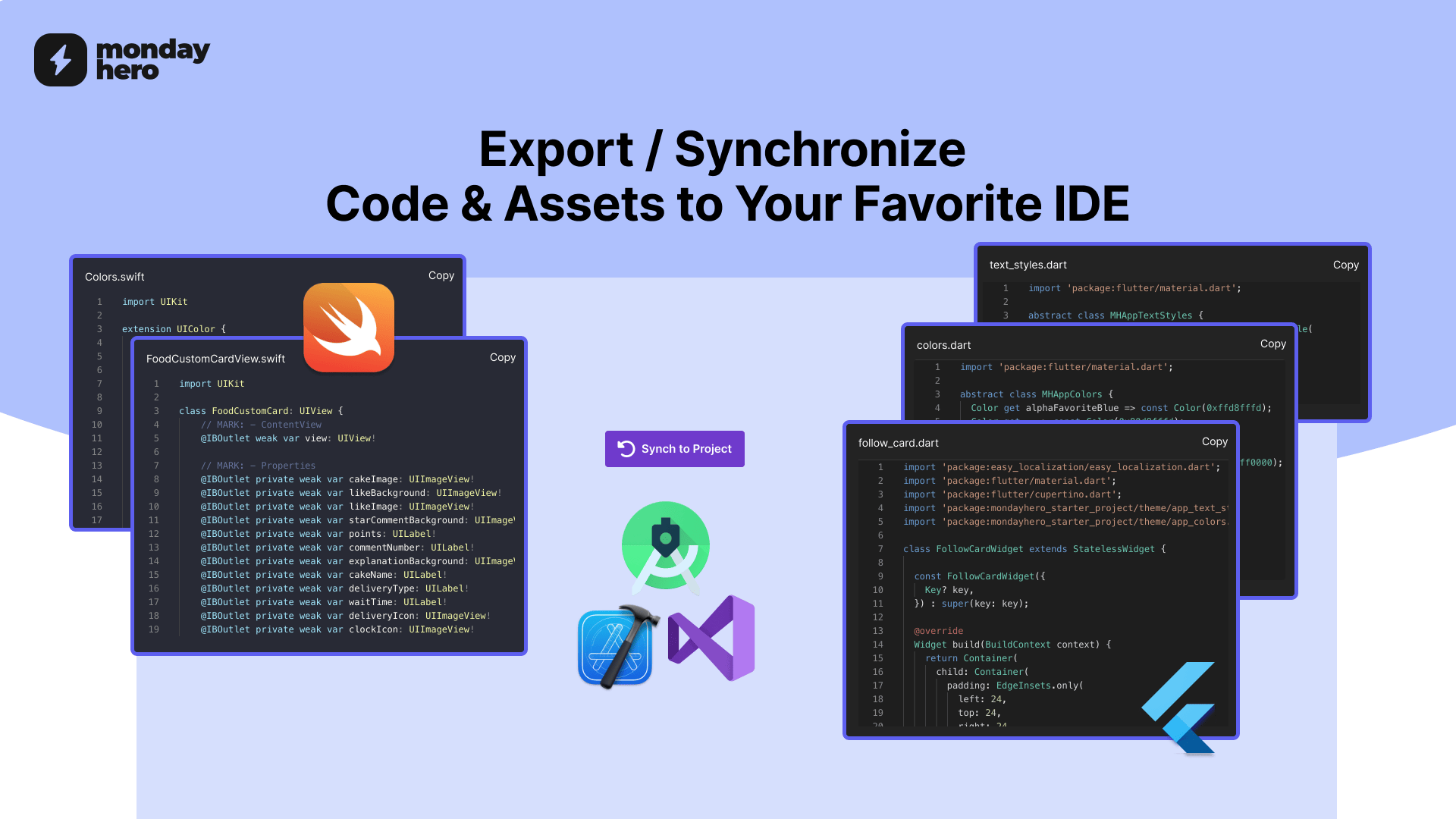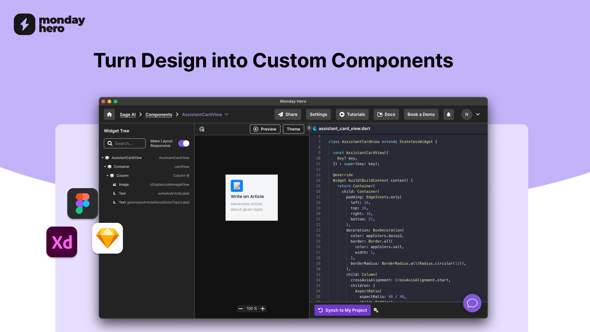 Monday Hero is a low-code tool that converts Figma, Adobe XD, and Sketch designs into reusable code components for you.