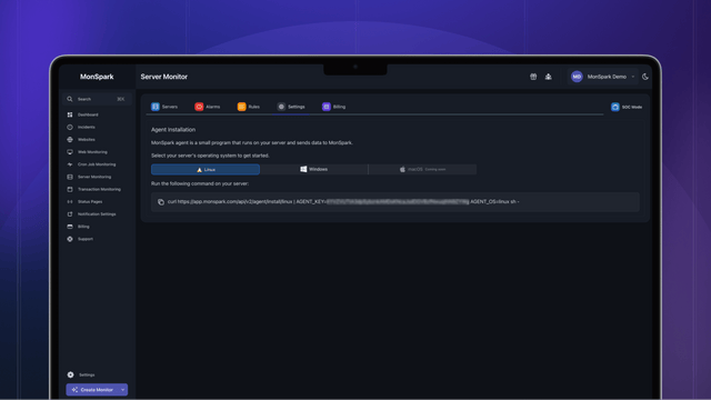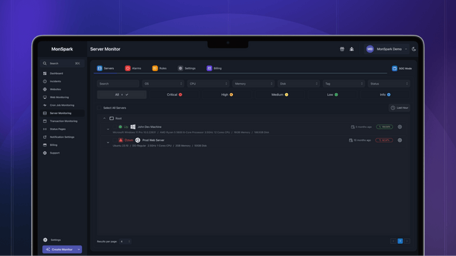MonSpark Server Monitoring tracks uptime and resource usage with real-time alerts to keep your servers running smoothly.