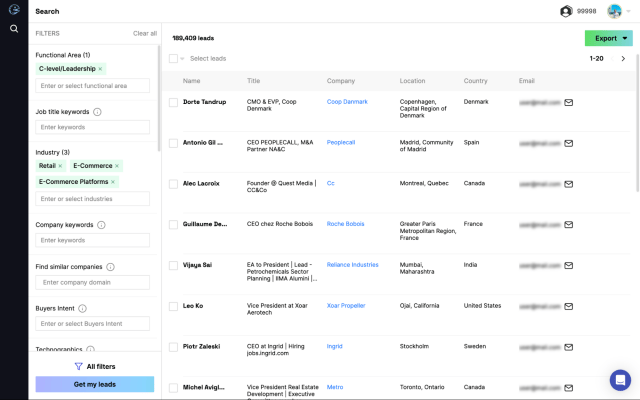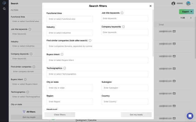 Access 140M profiles across 30M companies, and narrow down your search with advanced filters