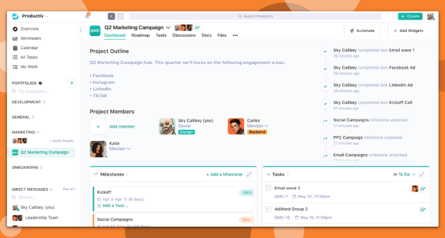Keep track of tasks, deadlines, milestones, and more from one intuitive platform