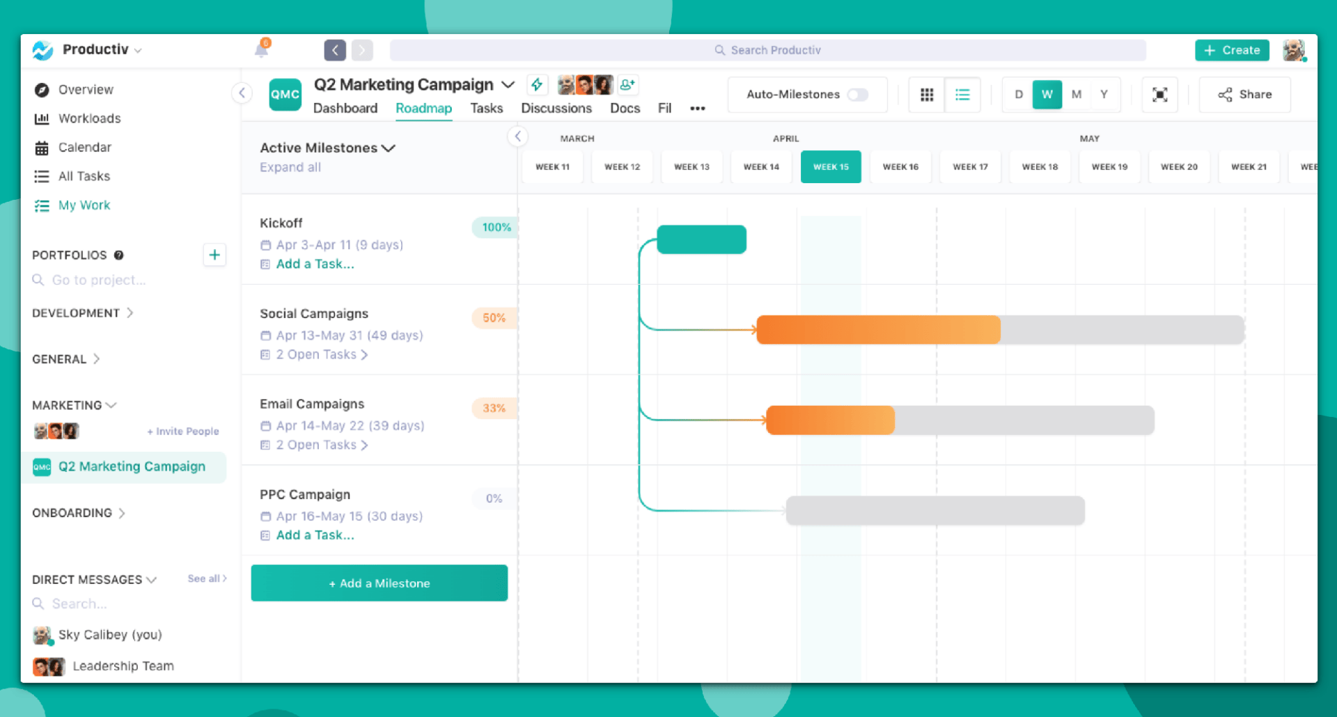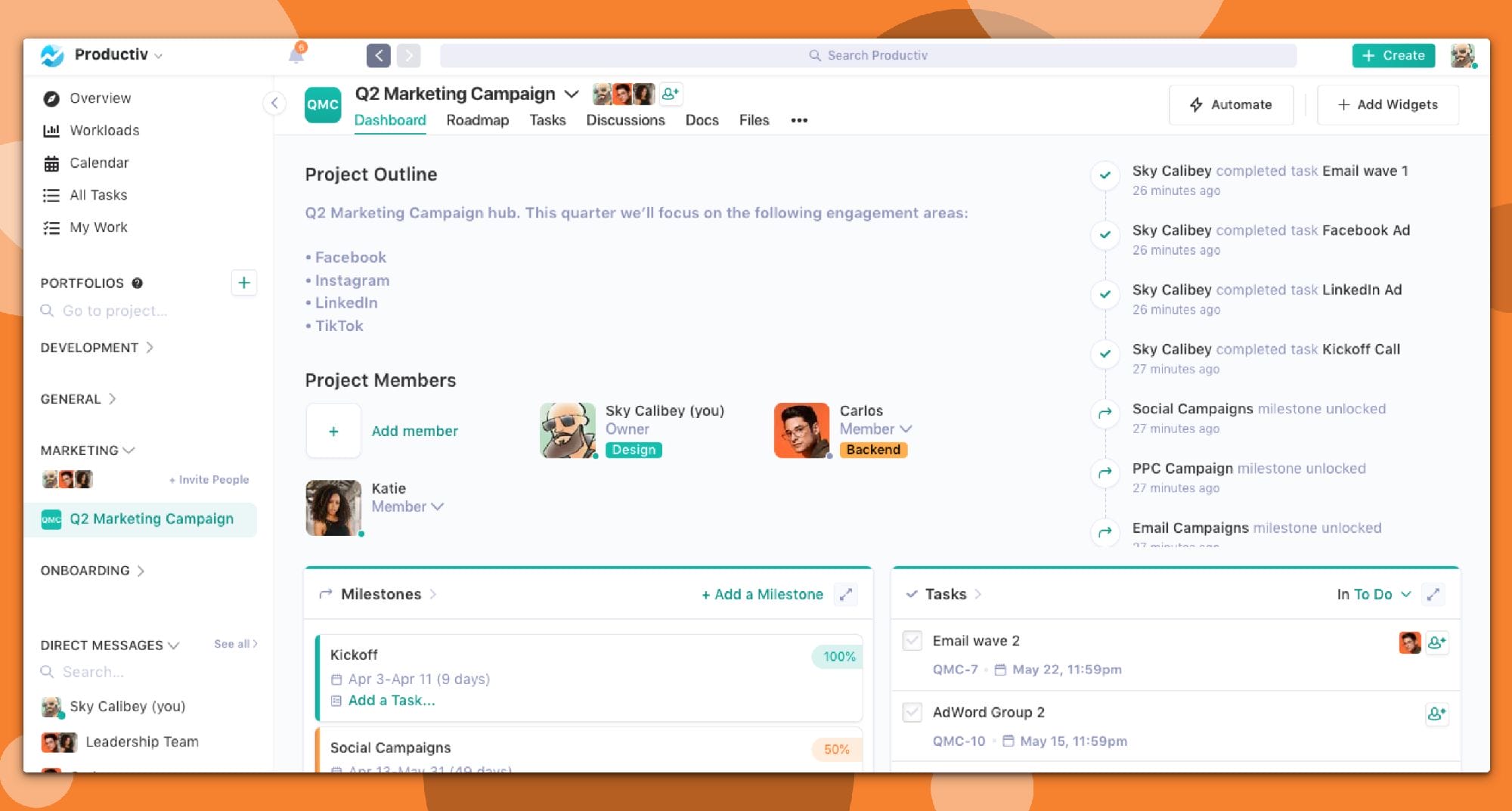 Keep track of tasks, deadlines, milestones, and more from one intuitive platform
