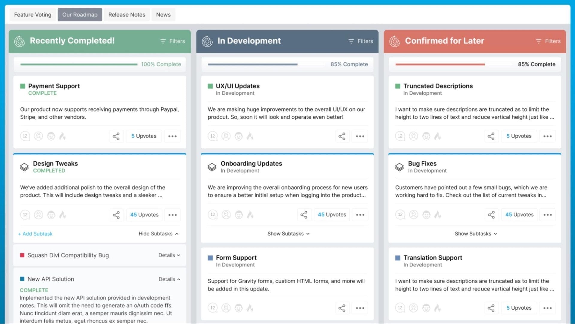 Even better, you’ll be able to build roadmaps to give users insights into the future of your application or service.