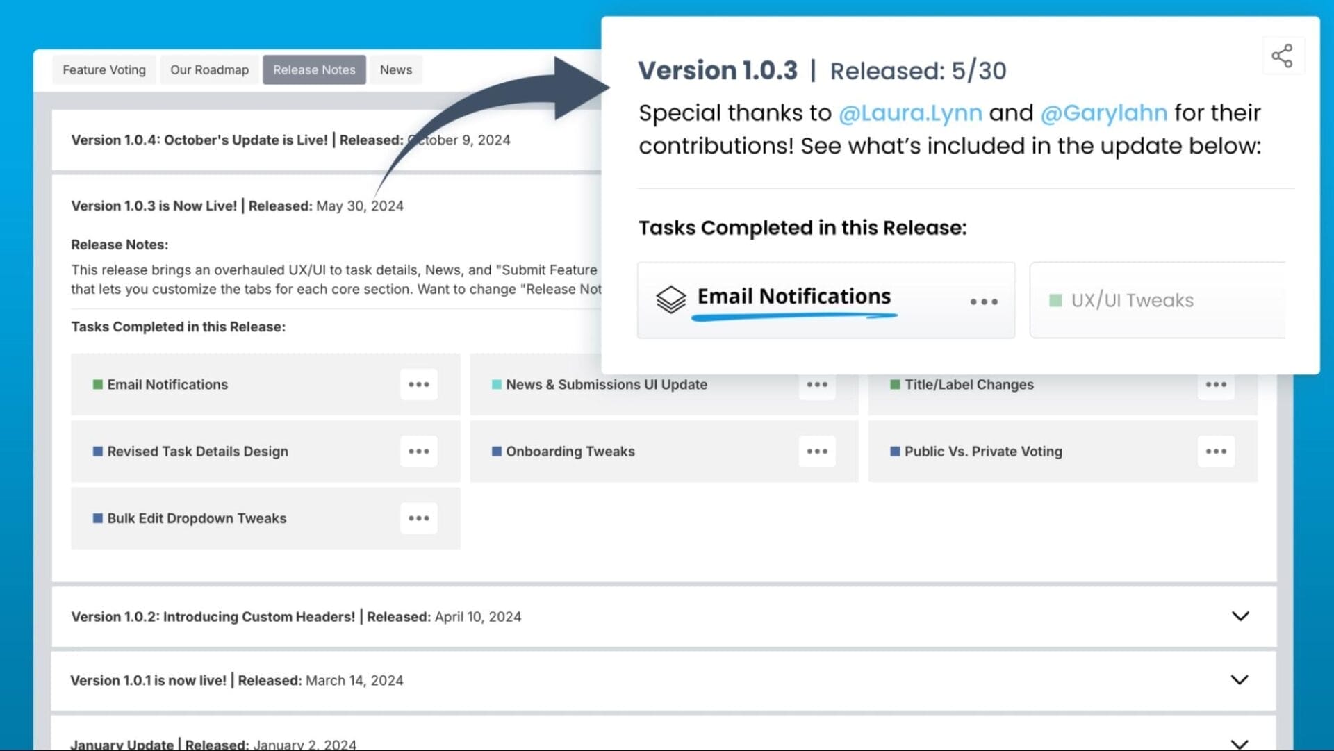 Give public credit to users who make suggestions so customers feel seen and appreciated