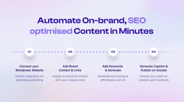 Generate on-brand, SEO articles at scale for your WordPress and social media