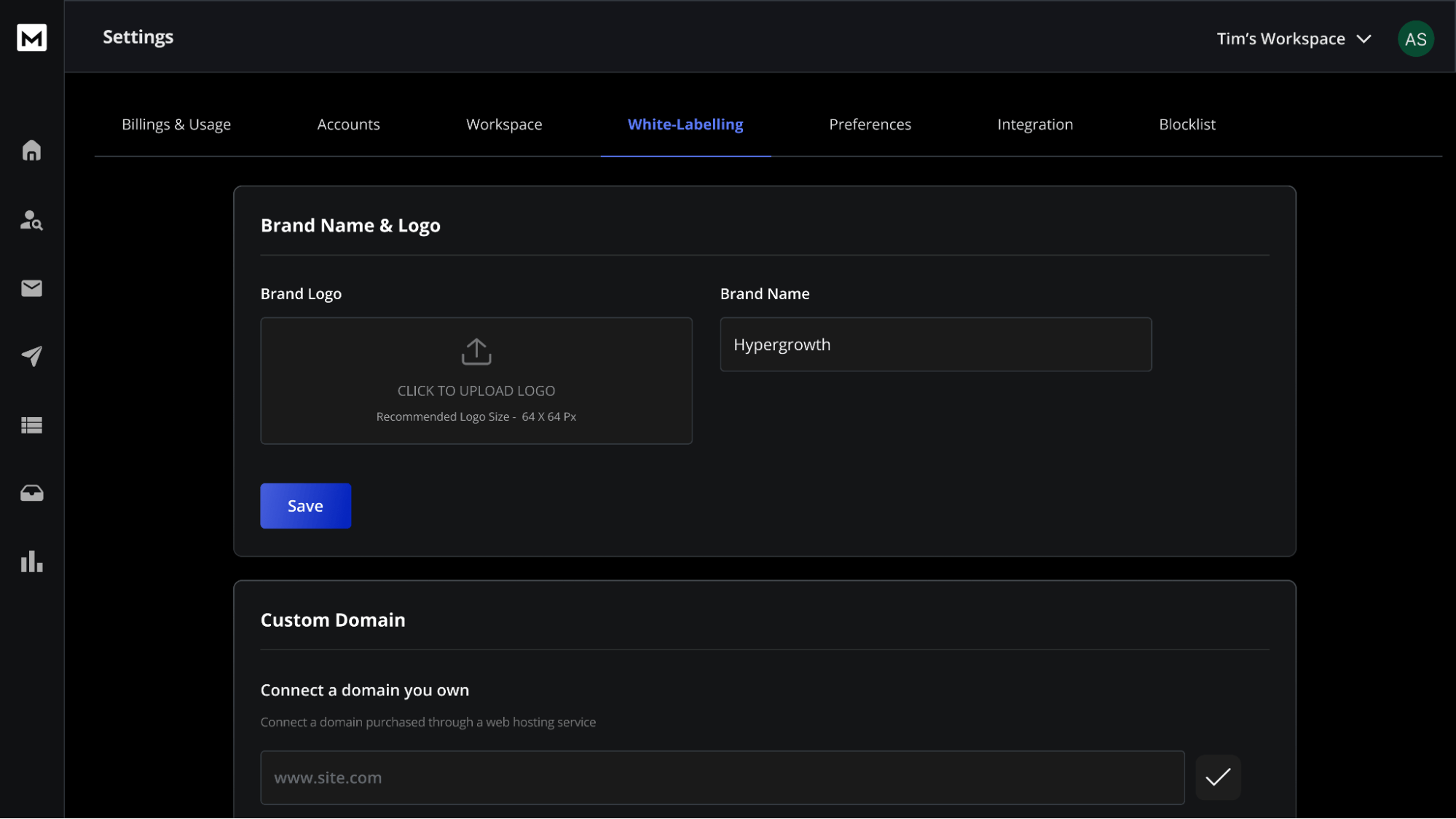 White label the entire platform with your branding and create unique workspaces for different clients