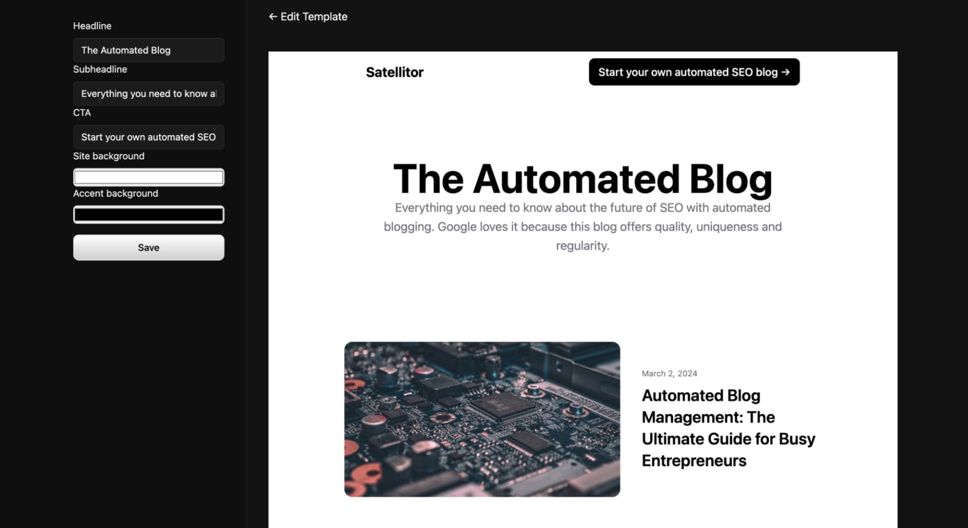 Satellitor is a smart blogging assistant that can automatically create, manage, and optimize blog posts to boost your site traffic.