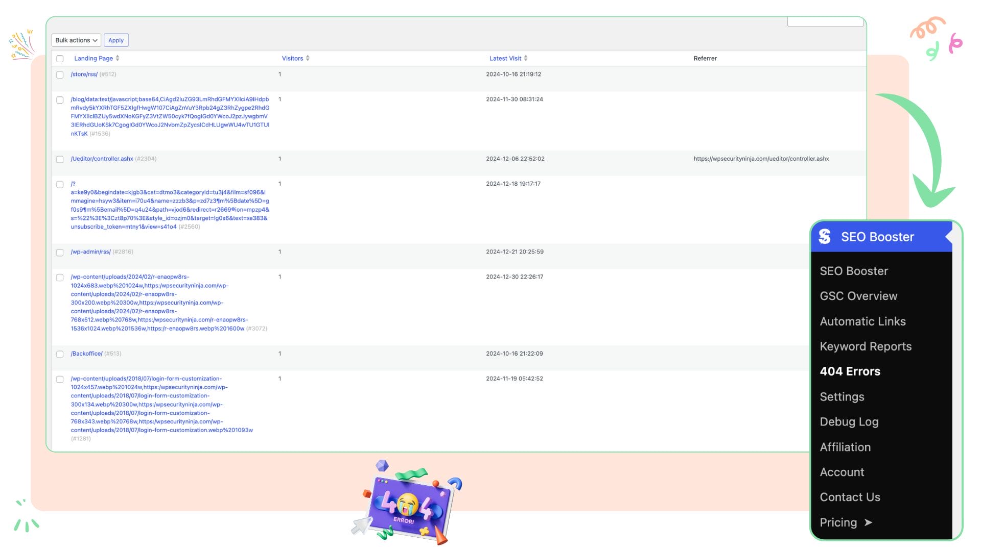 Is your website riddled with broken links and 404 errors? Good thing SEO Booster can monitor and catch any broken links for you.