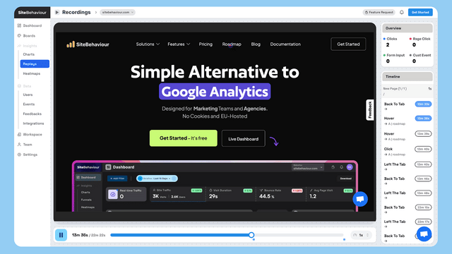 Use session replays to see how visitors navigate your site and where they’re dropping off.