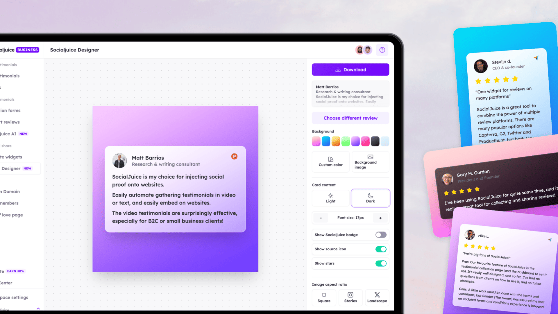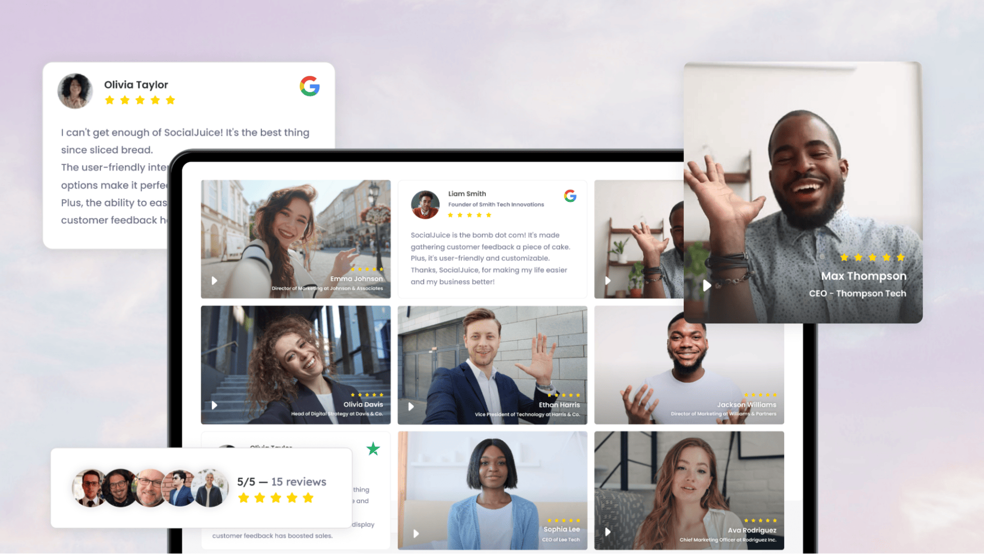 Socialjuice is a video-first customer review platform that lets you easily collect and share written or video testimonials.