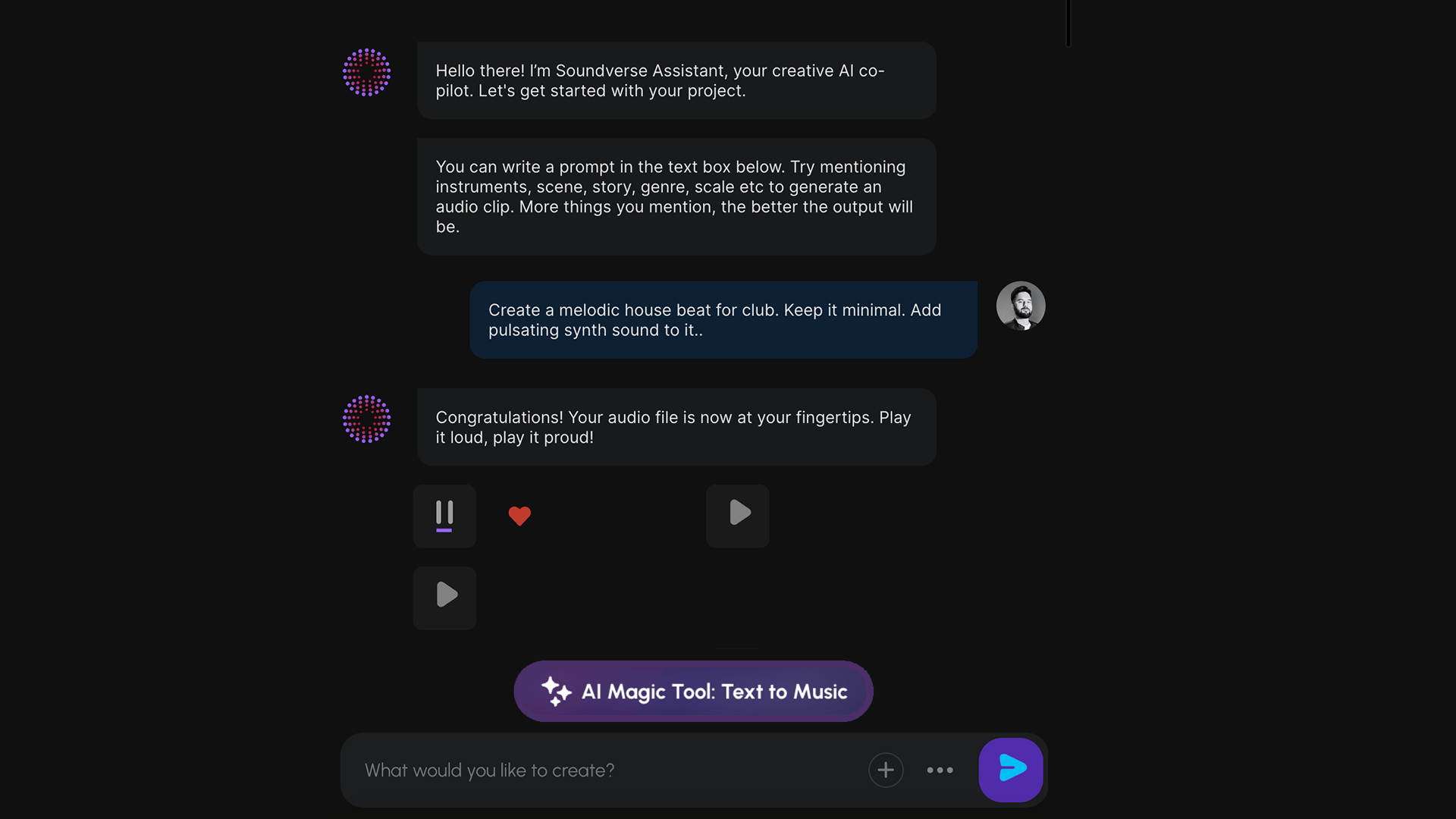 Transform your ideas into music by telling the AI what you’d like to hear and letting it work its musical magic