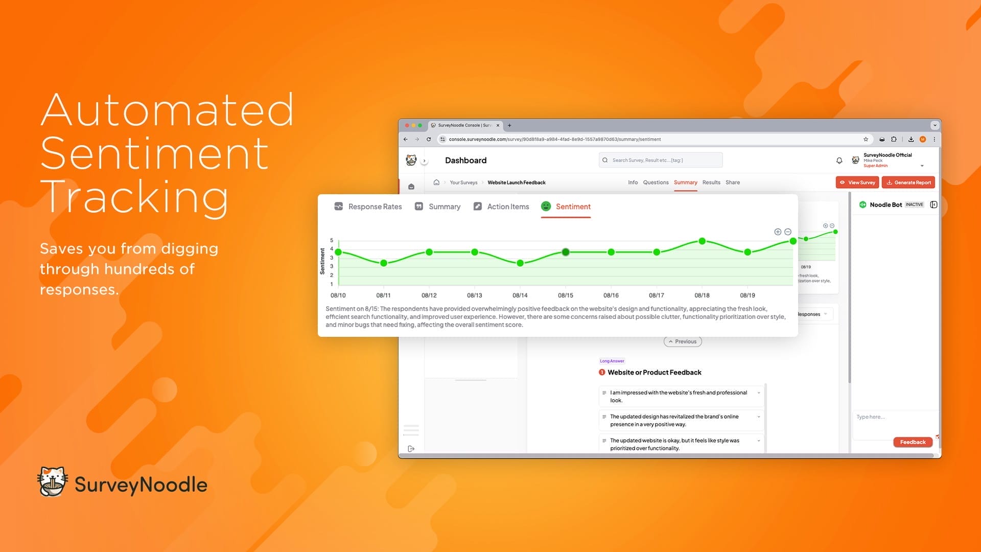 Best of all, you can literally review your survey results with SurveyNoodle’s built-in chatbot to identify insights and trends.