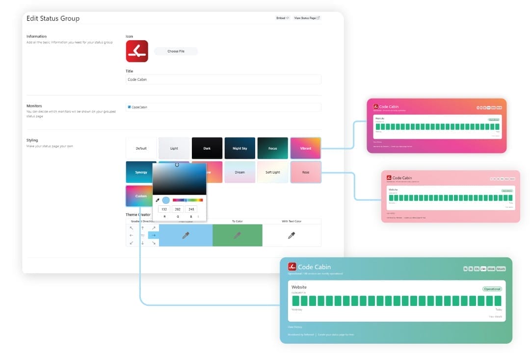 Customize the colors and styles of status pages based on your brand’s preferences.