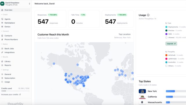 Thoughtly helps you deploy lifelike AI voice agents, sync CRM data, and launch SMS campaigns faster than ever.