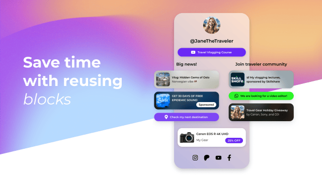 Urals is a microsite builder packed with customizable templates and reusable blocks that help you drive cross-platform traffic.