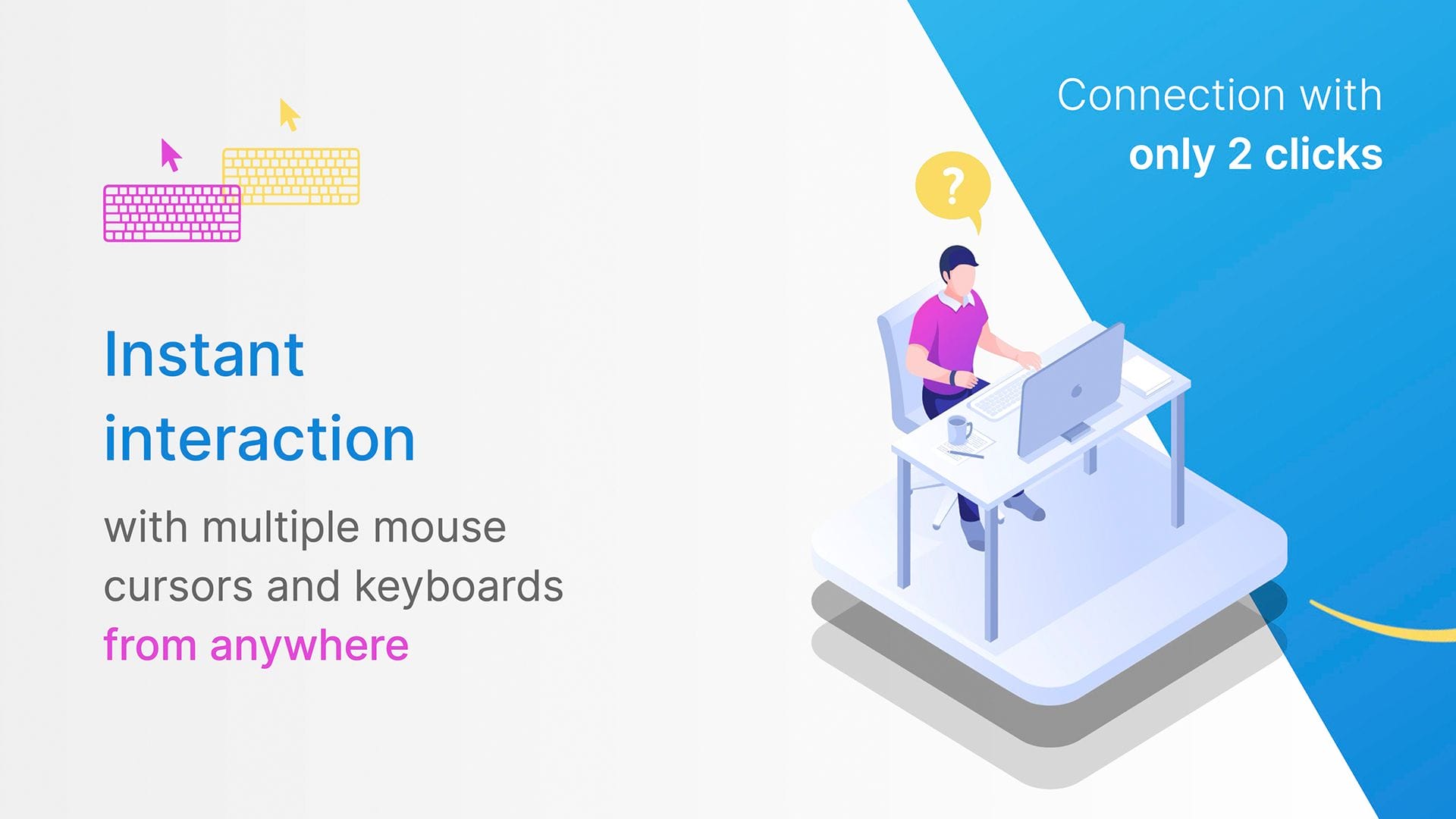 Share any window and desktop in just two clicks for attended remote access or collaboration with separate pointers and keyboards