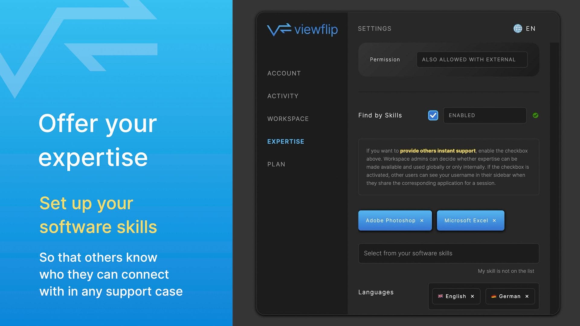 Thanks to viewflip, you can easily screen share, enable remote controls, co-work with your team, and get software support for all your apps.