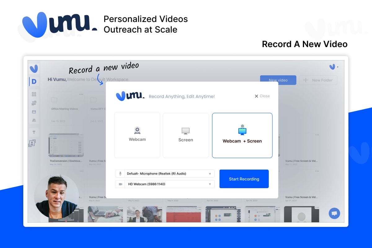 Vumu lets you record, edit, and share personalized video messages to scale your outreach and convert more leads.