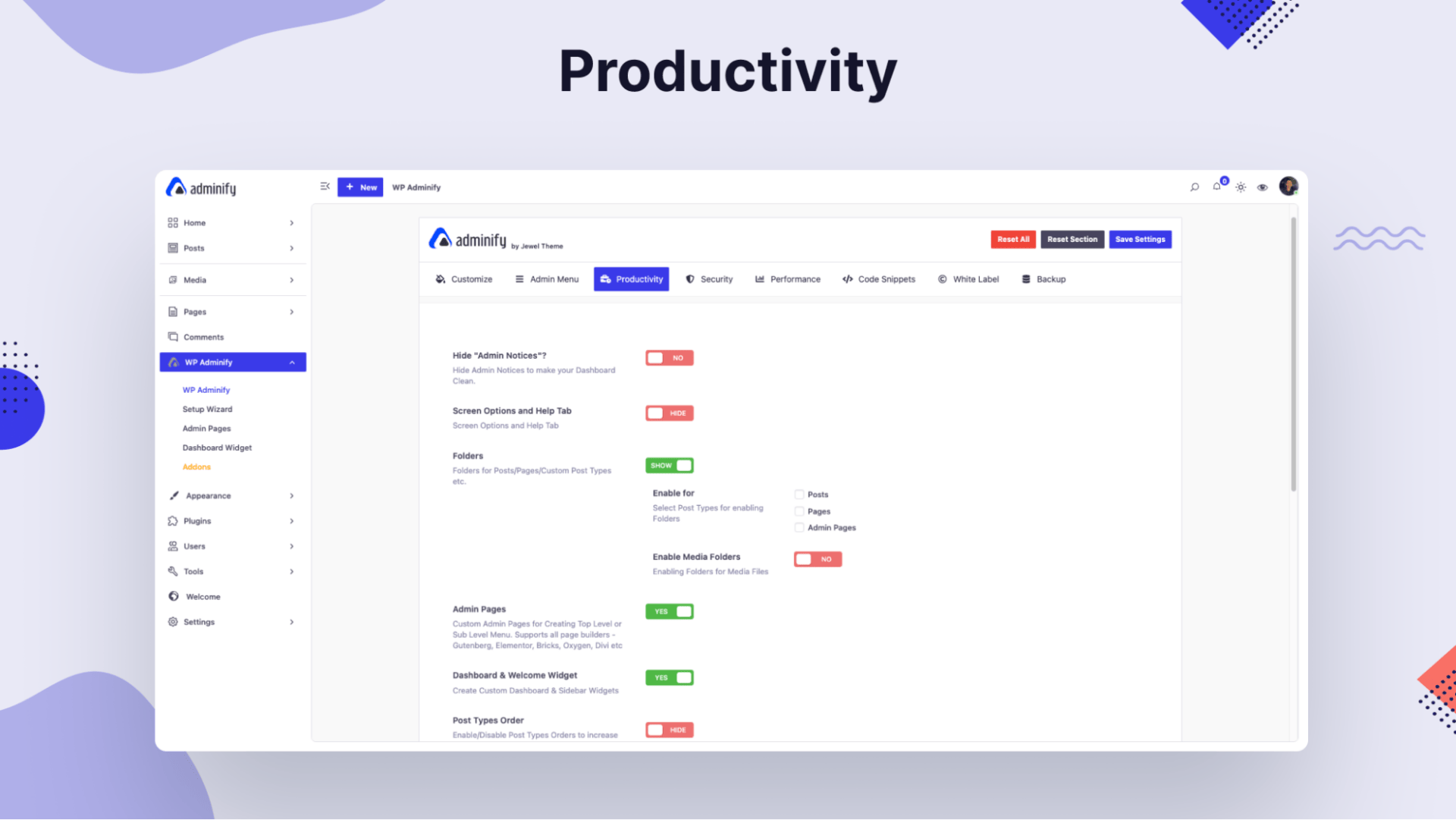 Packed with features designed to boost productivity, WP Adminify helps you get more done without breaking a sweat.
