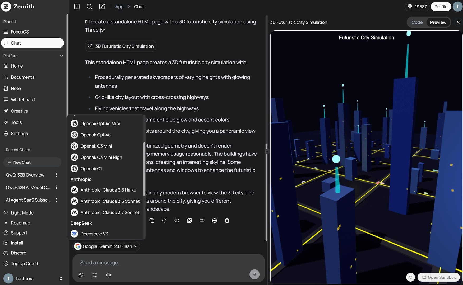Zemith lets you access the latest AI models for chats, documents, search engine optimization, and image generation on a single platform.
