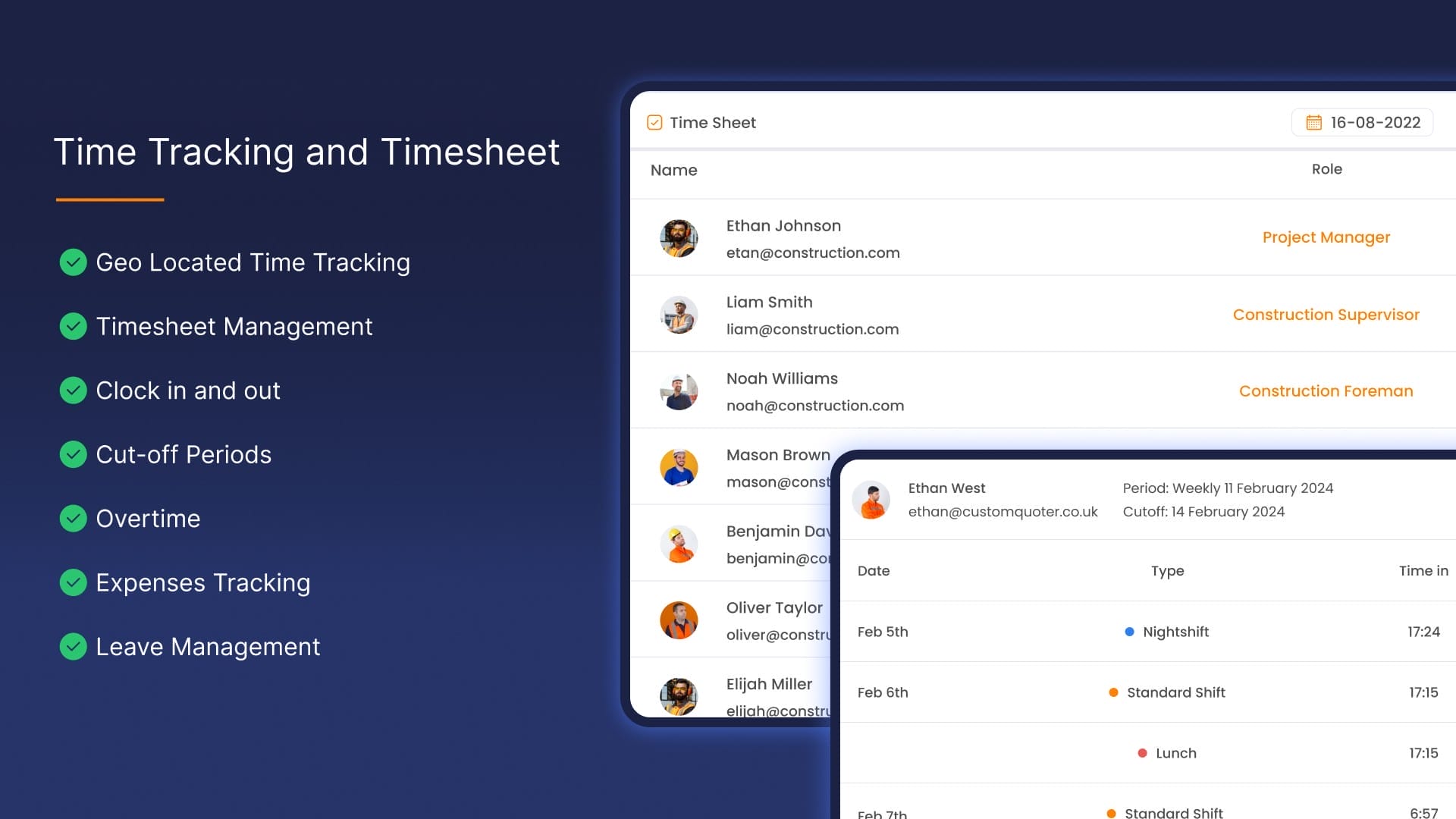Keep a pulse on expenses with built-in timesheets and labor cost tracking