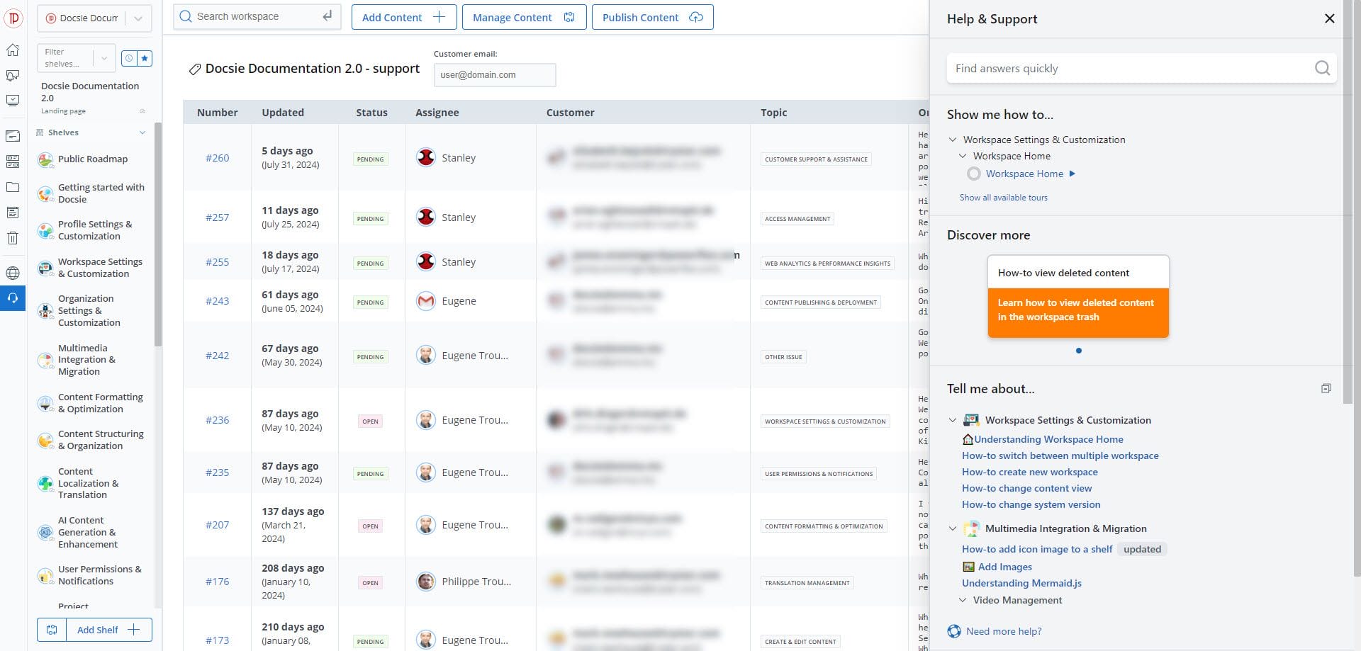 Combine self-service documentation with support tickets using only one platform