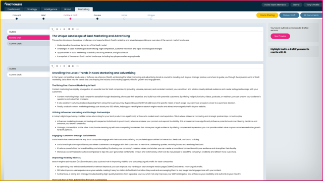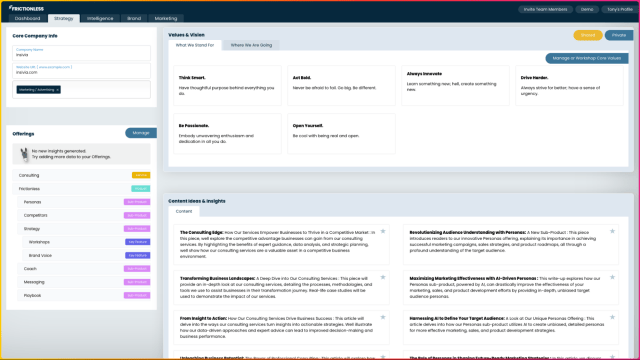 Frictionless is an AI-powered workspace that lets you build your vision, brand position, and market strategy—all in one place.