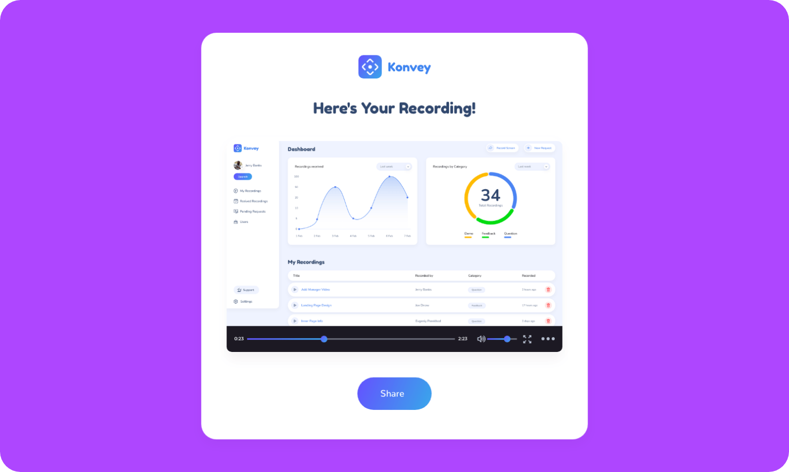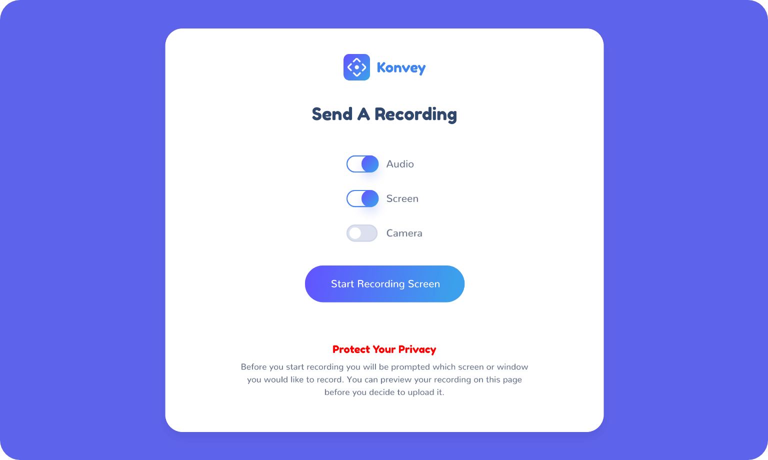 Konvey is a video messaging platform that can replace emails and meetings with personalized video, audio, and screen recordings.