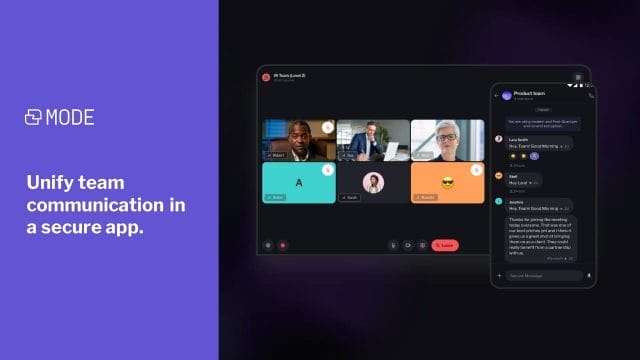Mode unifies team communication by offering messaging, voice & video calling, screen sharing, file sharing, and voice notes — all within one secure app.