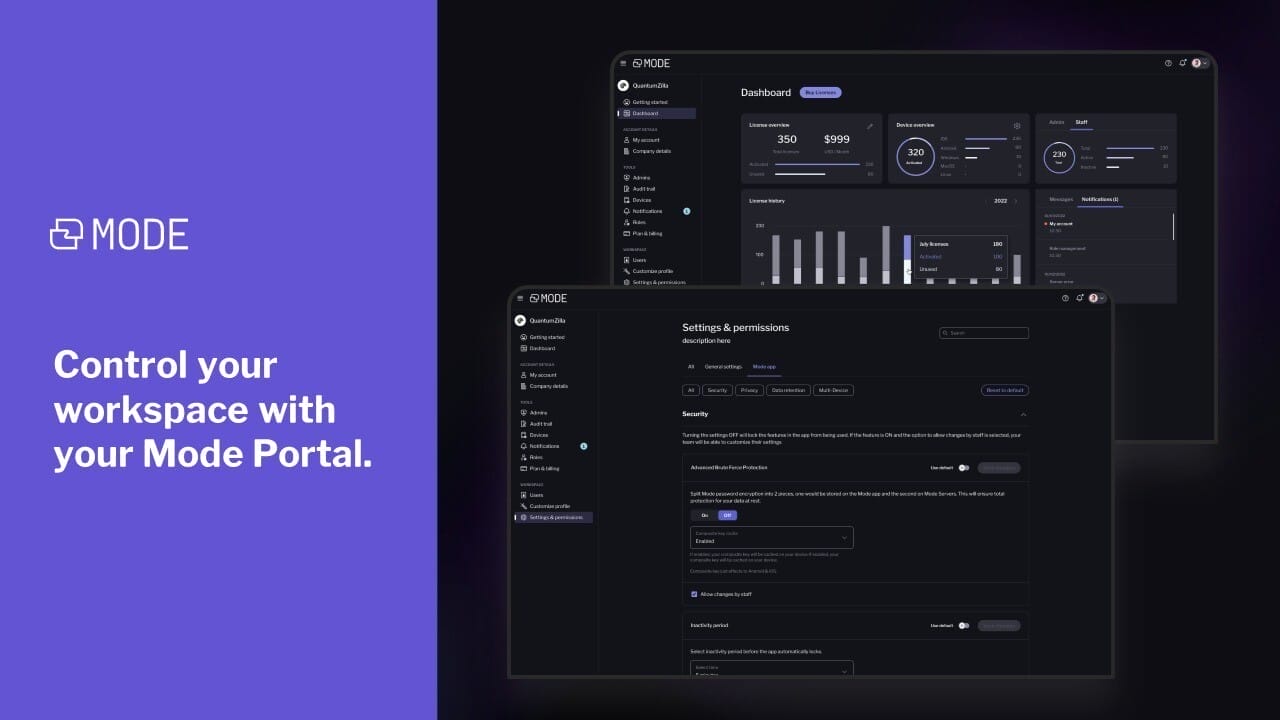 With the Mode administration portal, company admins can control user access and settings across the Mode apps connected to their workspace; control that is not available in most encrypted messaging apps for consumers.