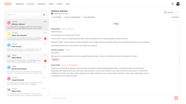 Using the power of AI, Periodix can categorize your outreach responses to gauge interest levels and then whip up appropriate replies.