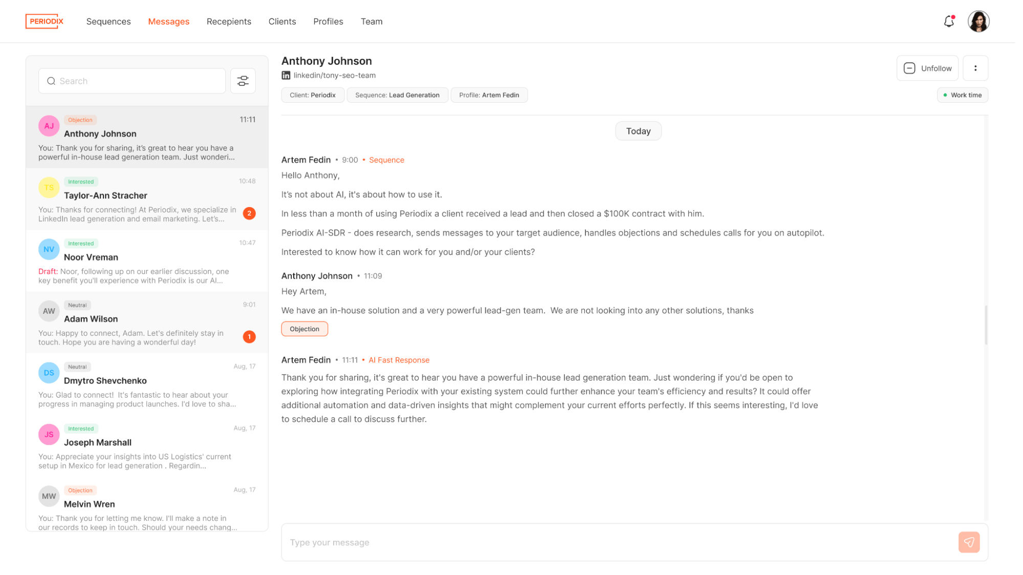 Not sure how to revive a dead conversation? Periodix makes it easy to follow up with leads who’ve gone silent.